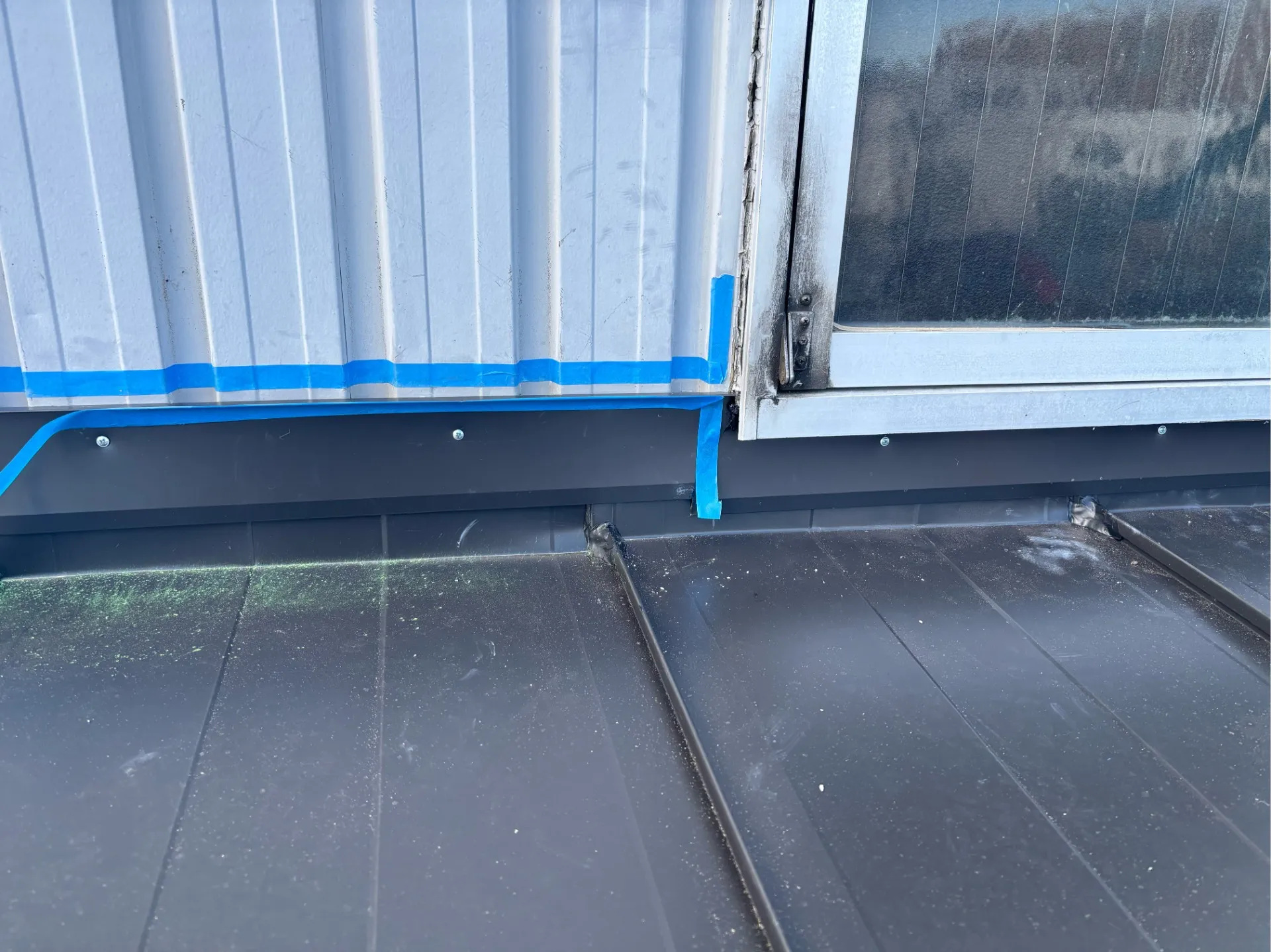 ゴールデンウィーク期間に工事をさせていただいておりました某倉庫様の庇部分の板金工事も無事に終わらせることができました。