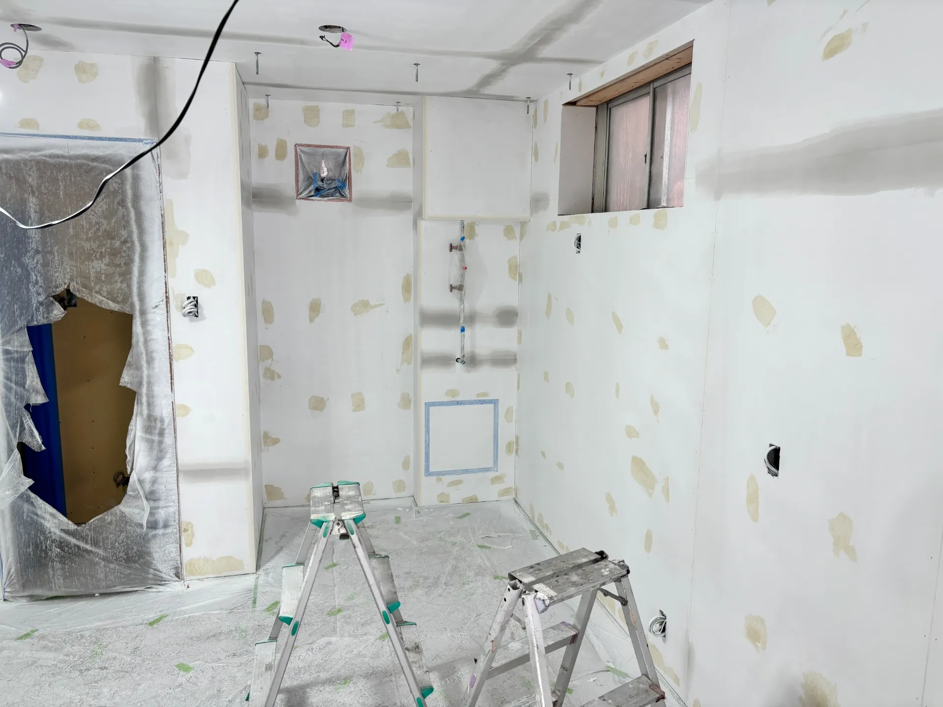 不燃性能の強化: 石膏ボード単体でも防火性はありますが、水や熱にさらに強い「ケイカル板」を重ねることで、万が一の火災時にも壁の向こう側(隣室や構造体)へ火が回る時間を稼ぎます。